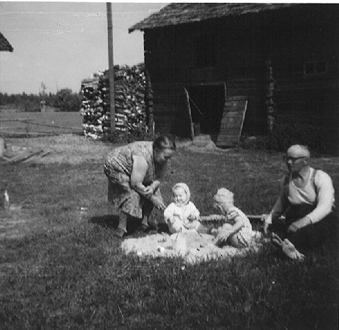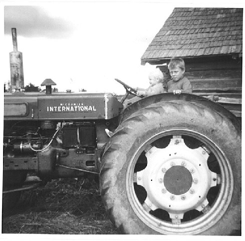 Lapsen lapset Antti (s. -66) ja Pekka (s.-65, Kosken nykyinen isäntä) isovanhempien Helmi ja Tuomas Yrttiahon hoidossa Kosken tilalla kesällä 1966.